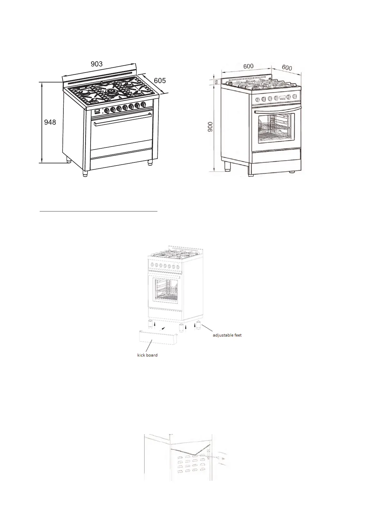adjust the cooker to a suitable height then you may cover the feet with the kick board if