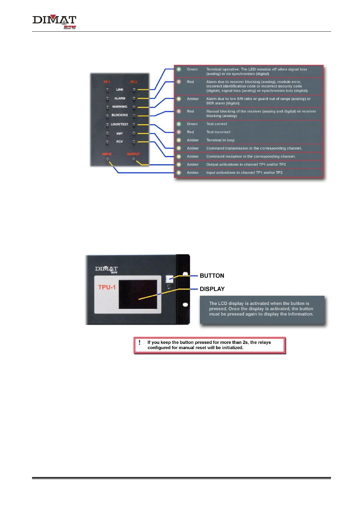 DIMAT TPU-1 - Signalling of LEDs (II); Optional LCD display