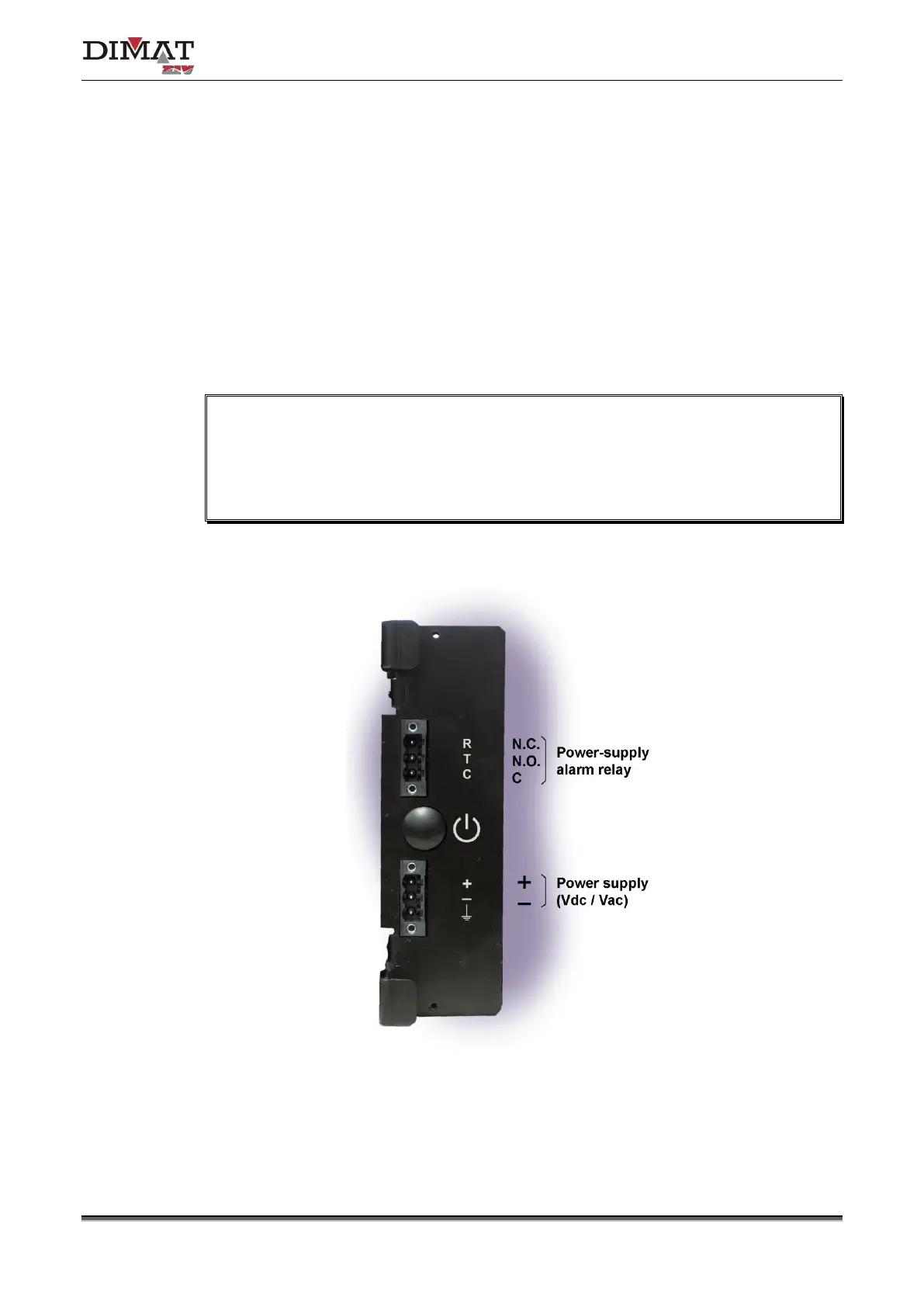 power-supply module has two terminal blocks on the front plate. One is associated with the