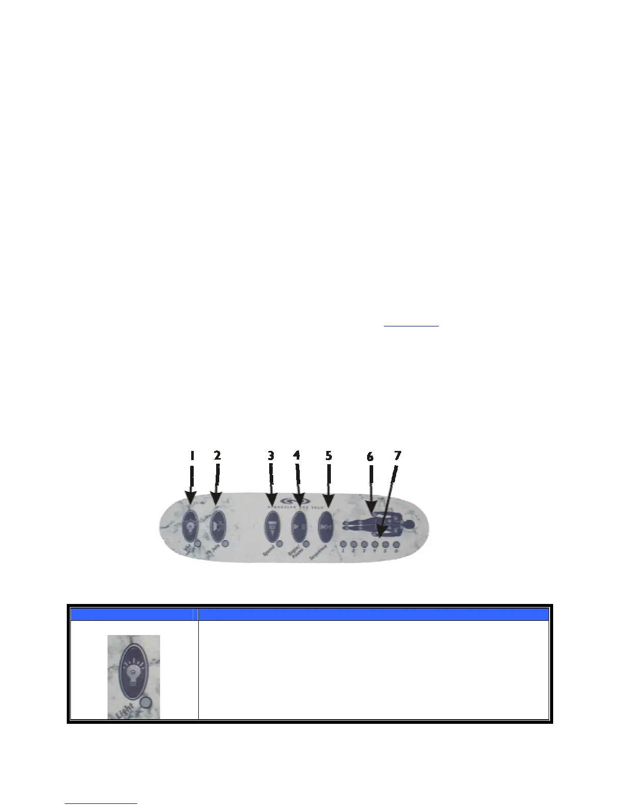 The LIGHT pad controls the spa light. Status light illuminates when light is on.