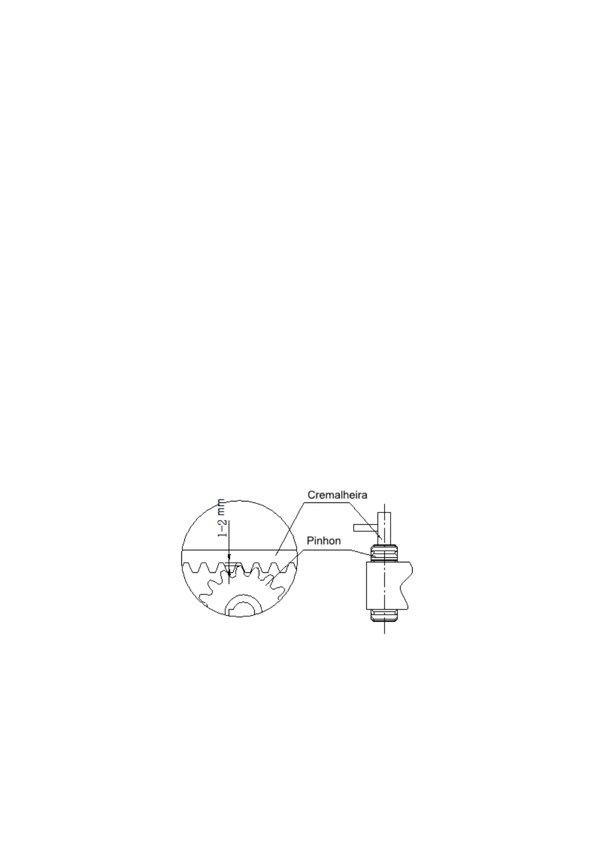 É importante que a cremalheira seja fixa com 1 ou 2 mm de