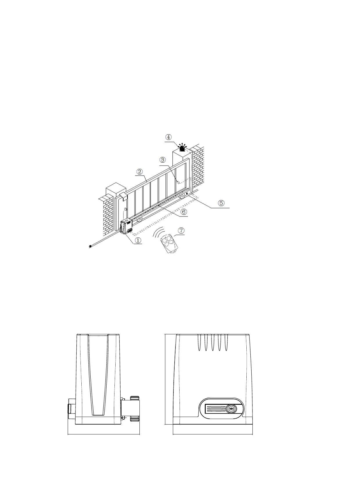 1. MOTOR; 2. PUERTA; 3. FOTOCÉLULA; 4. LÁMPARA SEÑALIZACIÓN; 5.