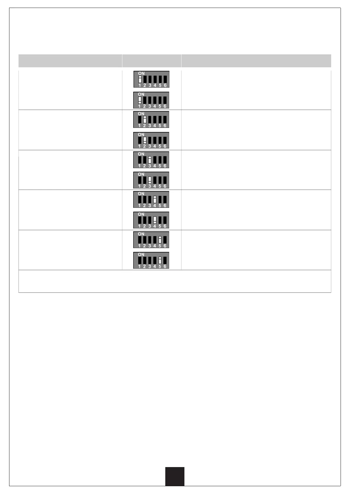 system, shall be carried out by means of the 6-position SW2 micro switch, which is on the card. The following table will