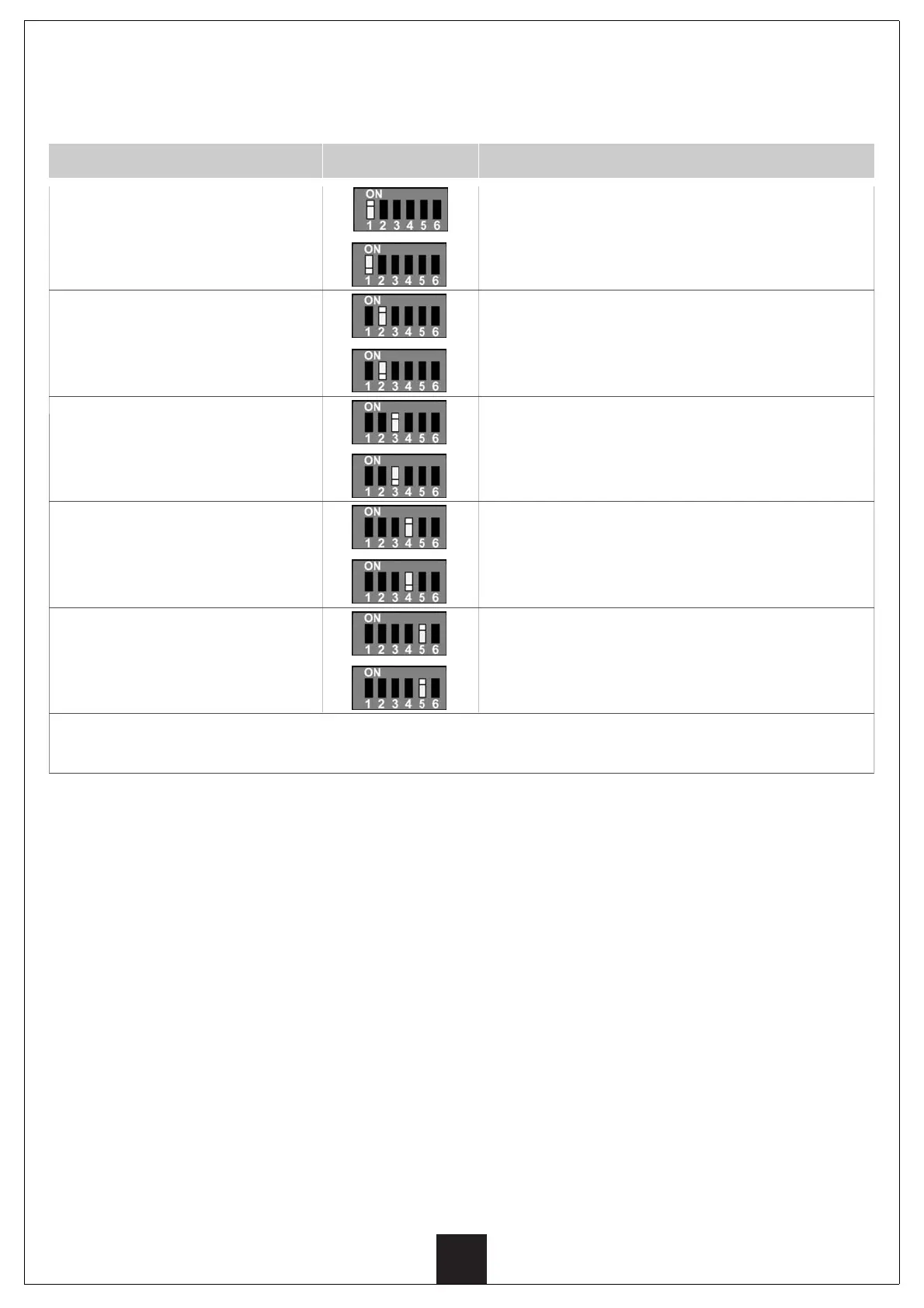 mit 6 Stellpositionen auf der Leiterplatte (SW2). Die folgende Tabelle veranschaulicht die Auswahl der verfügbaren Funktionen.