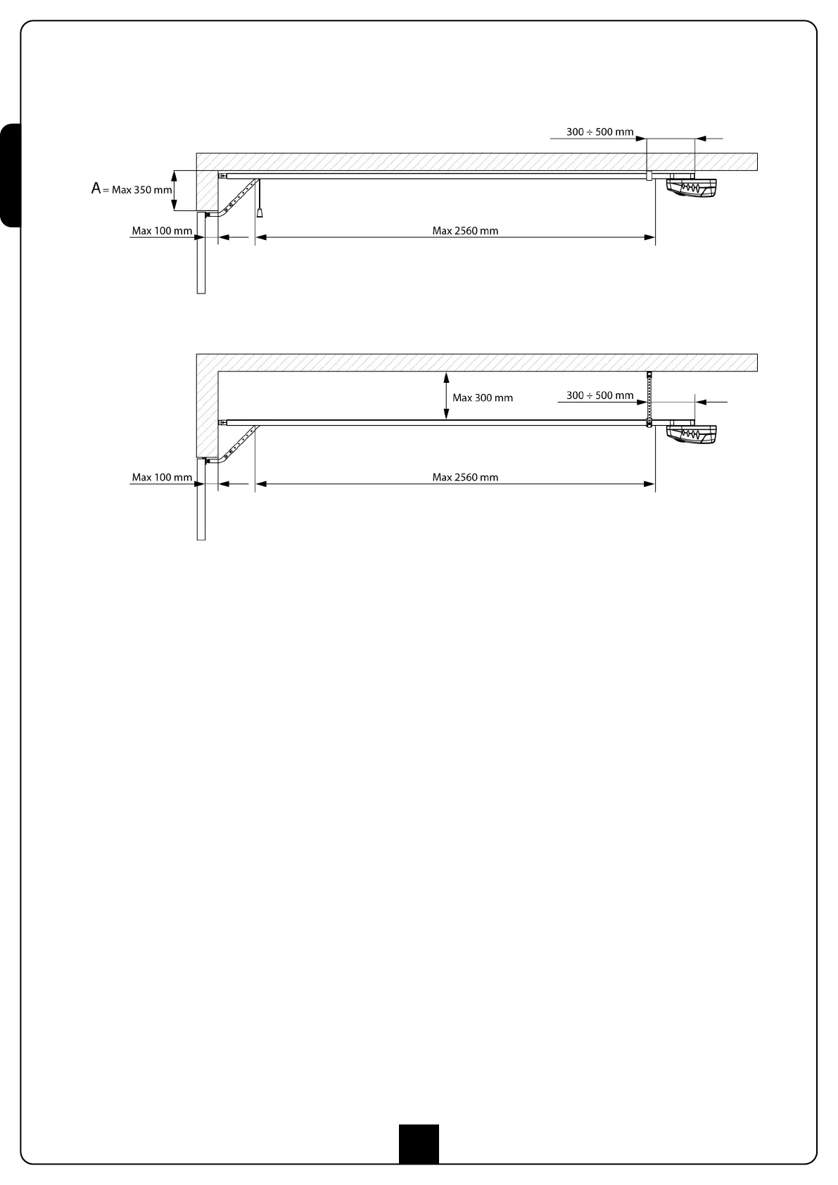 CAUTION: It measurement A shown in the figure above is greater than 350 mm accessory kit p/n 163203 must be installed. Respect the