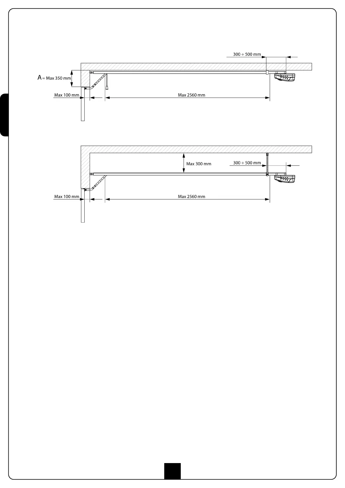 ATTENTION: Si la mesure A indiquée dans la figure ci-dessus dépasse 350 mm il est nécessaire d'installer le kit accessoire code 163203.