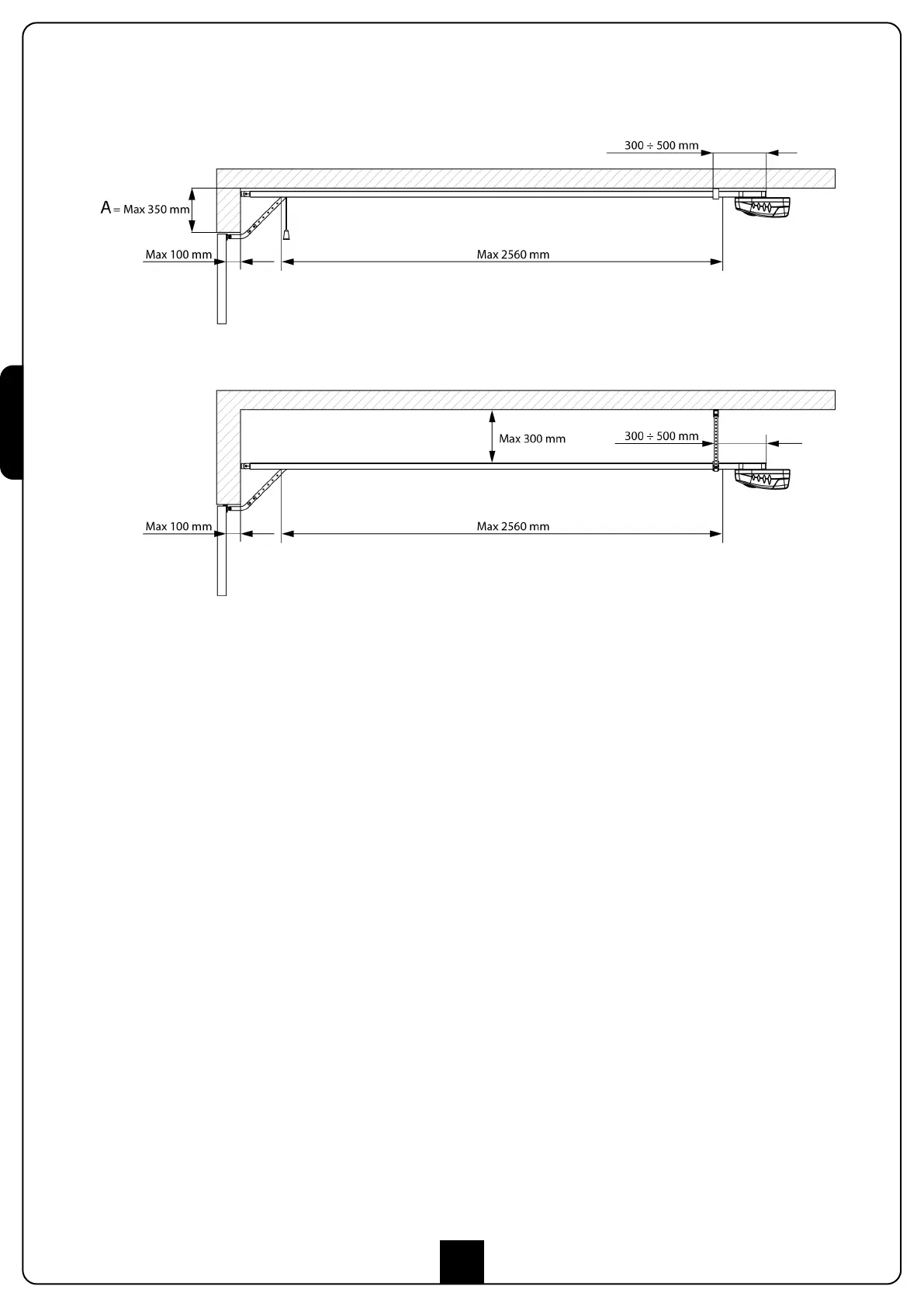 ATENCIÓN: Si la medida A reportada en la figura anterior supera los 350 mm es necesario instalar el kit de accesorios código 163203.