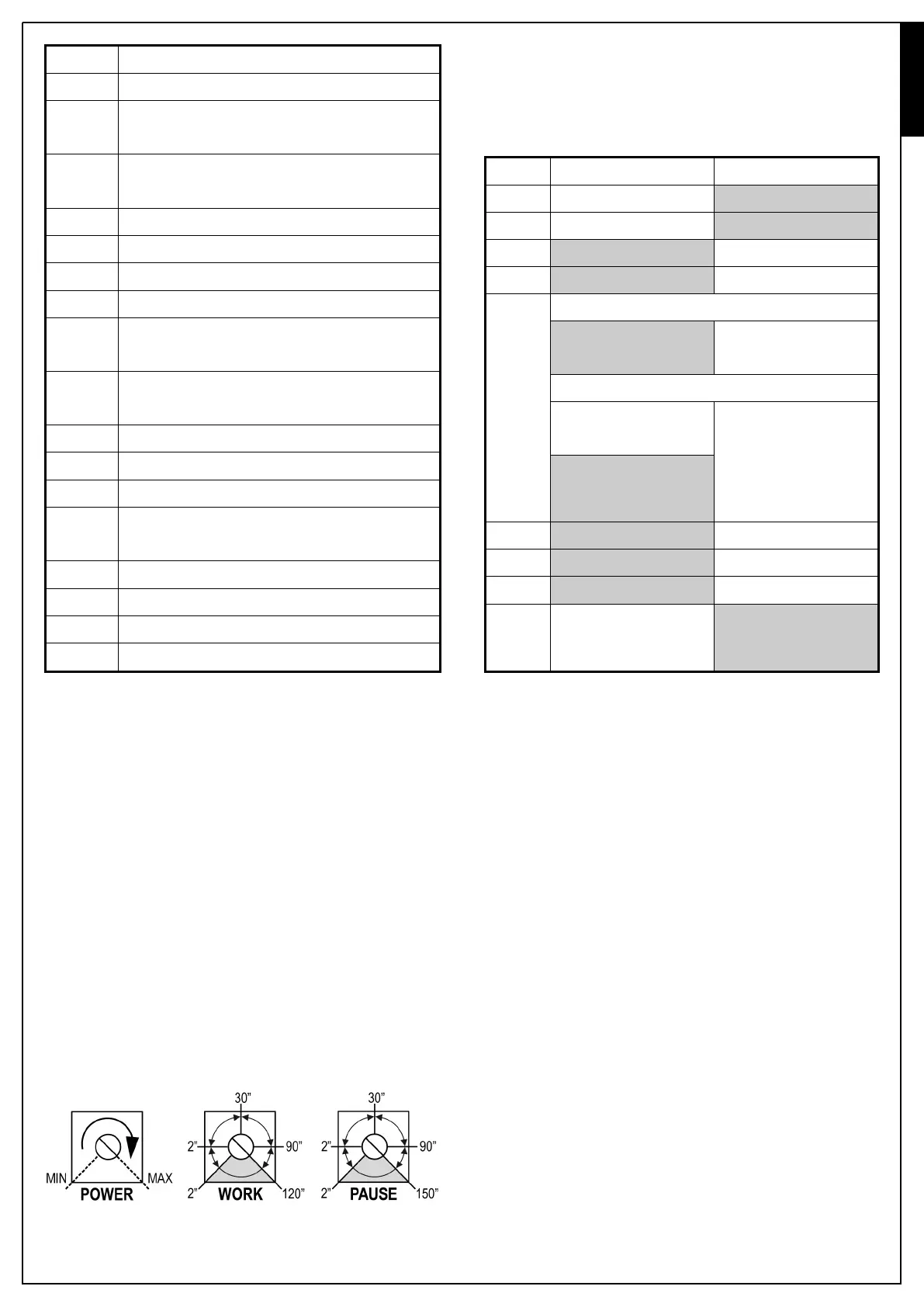 La potencia y los tiempos de trabajo se regulan mediante 3