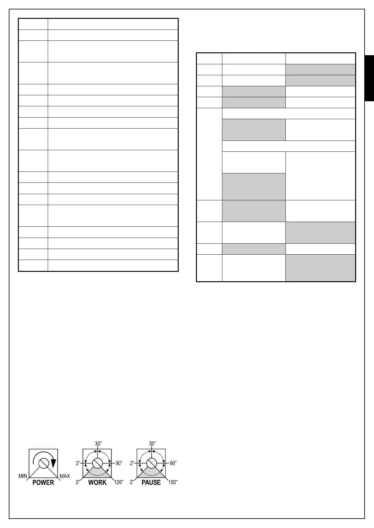 WORK: tempo de trabalho dos motores (2 ÷ 120 segundos).