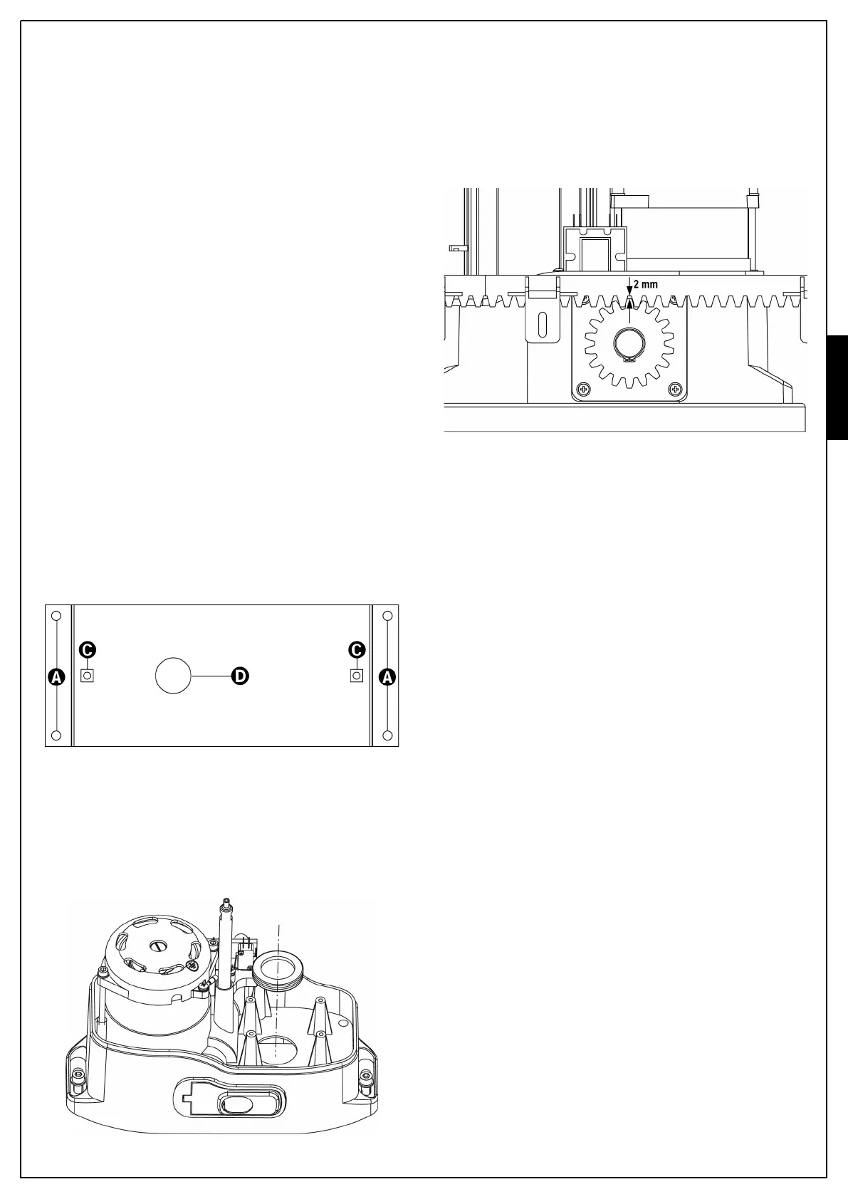 2 mm au-dessus du pignon moteur pour éviter que le poids du
