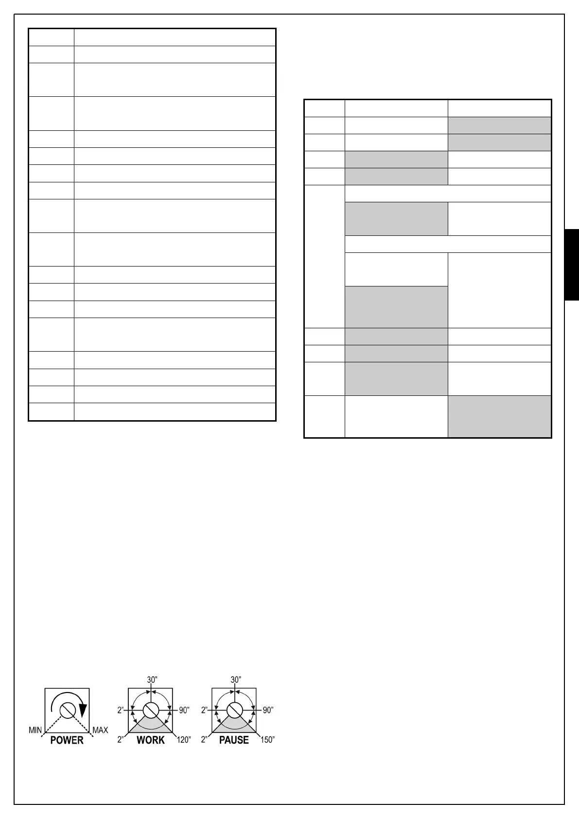 WORK: temps de travail des moteurs (2 ÷ 120 secondes).