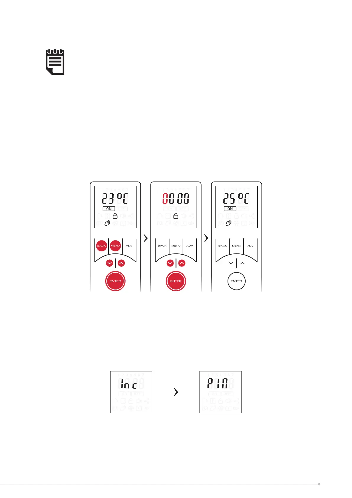• Press any button to enter the PIN display
