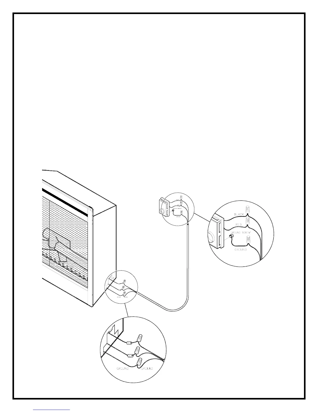 The wall mounted thermostat is connected to the fireplace by running a 2 conductor wire with a ground from the