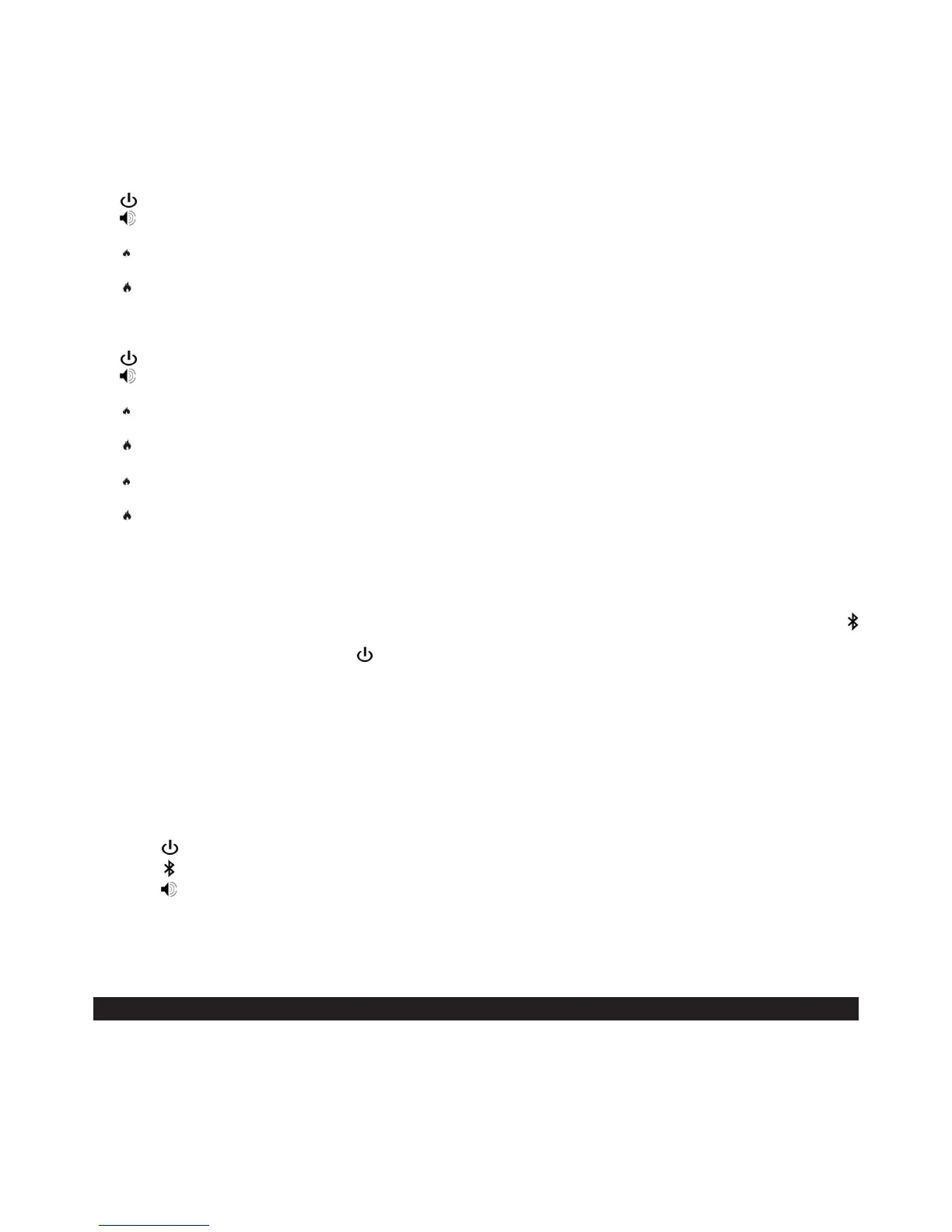 • is the increase ame button. Press this to increase the height/intensity of your ame. You will hear an audible