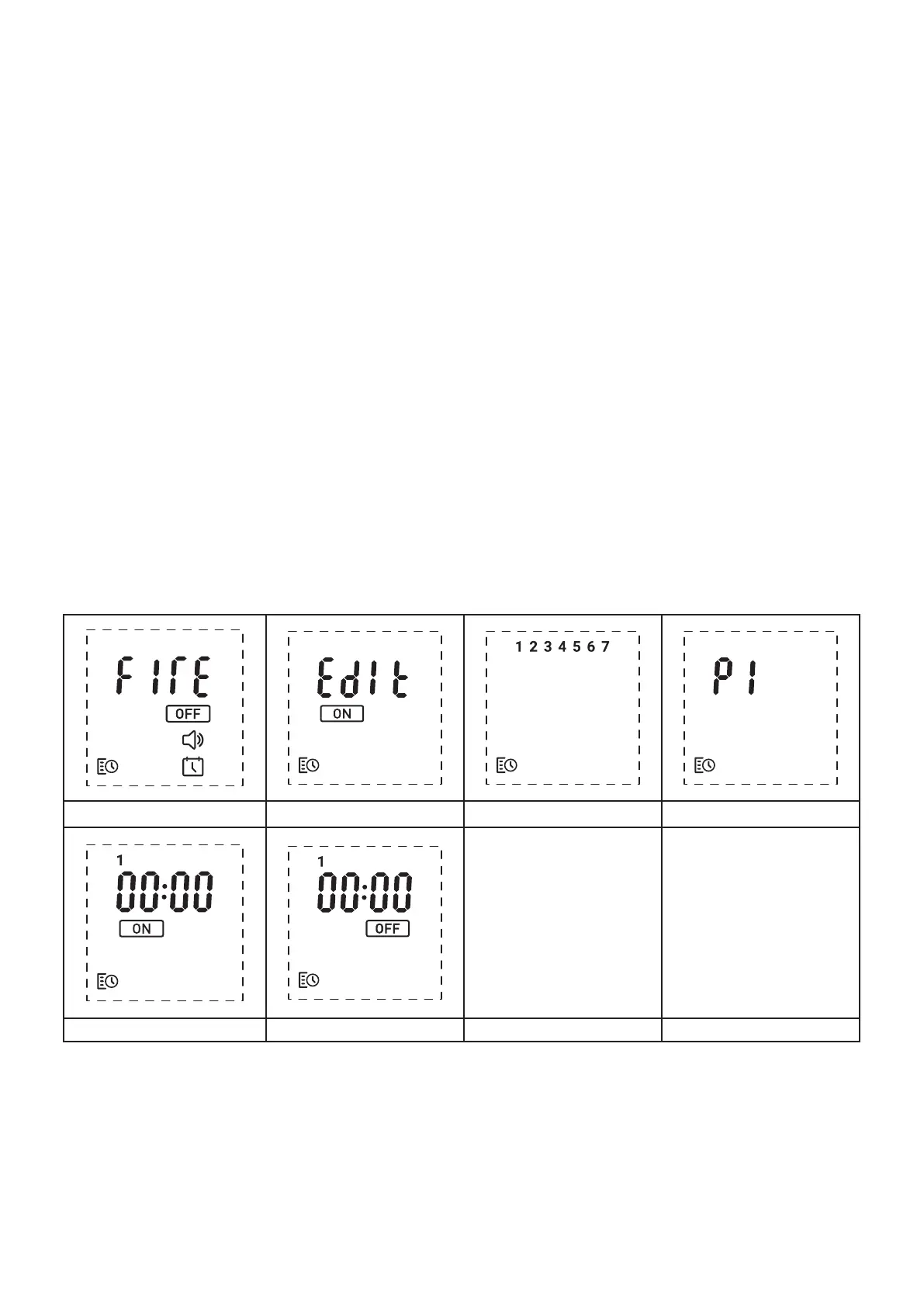 9. The rst ‘0’ of the ‘On’ time for the selected time period will be ashing (Fig E). Using ‘Button 5 – Arrows’, navigate to