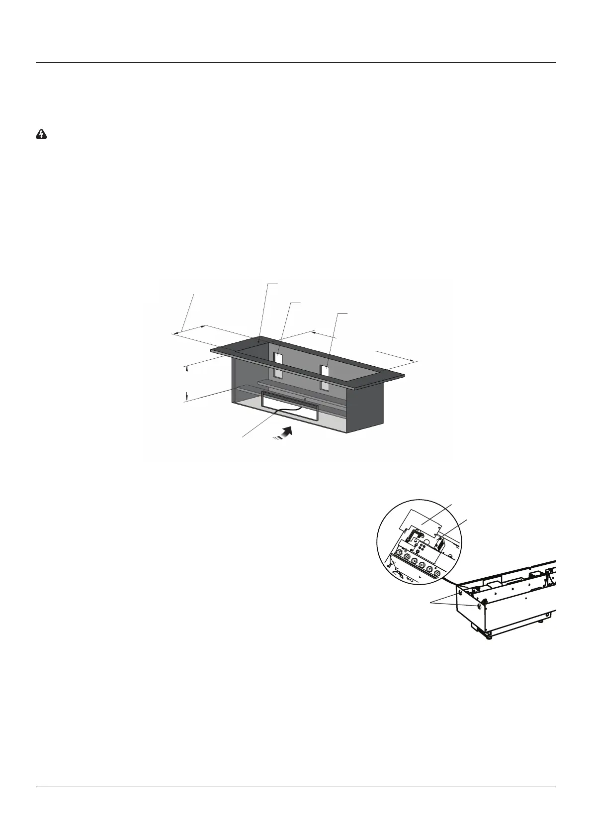 1. Use taquetes para marcar el entorno con las siguientes dimensiones internas/de abertura mínimas. Tenga en