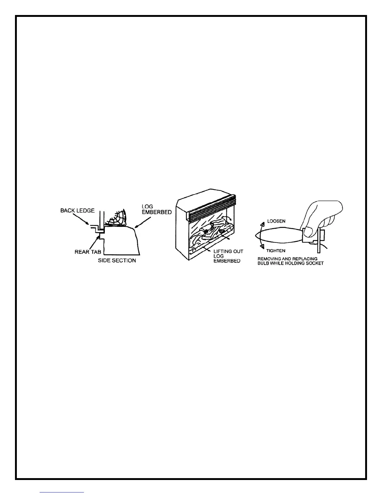 8. Replace the log ember bed by placing the back lip of the log ember bed under the
