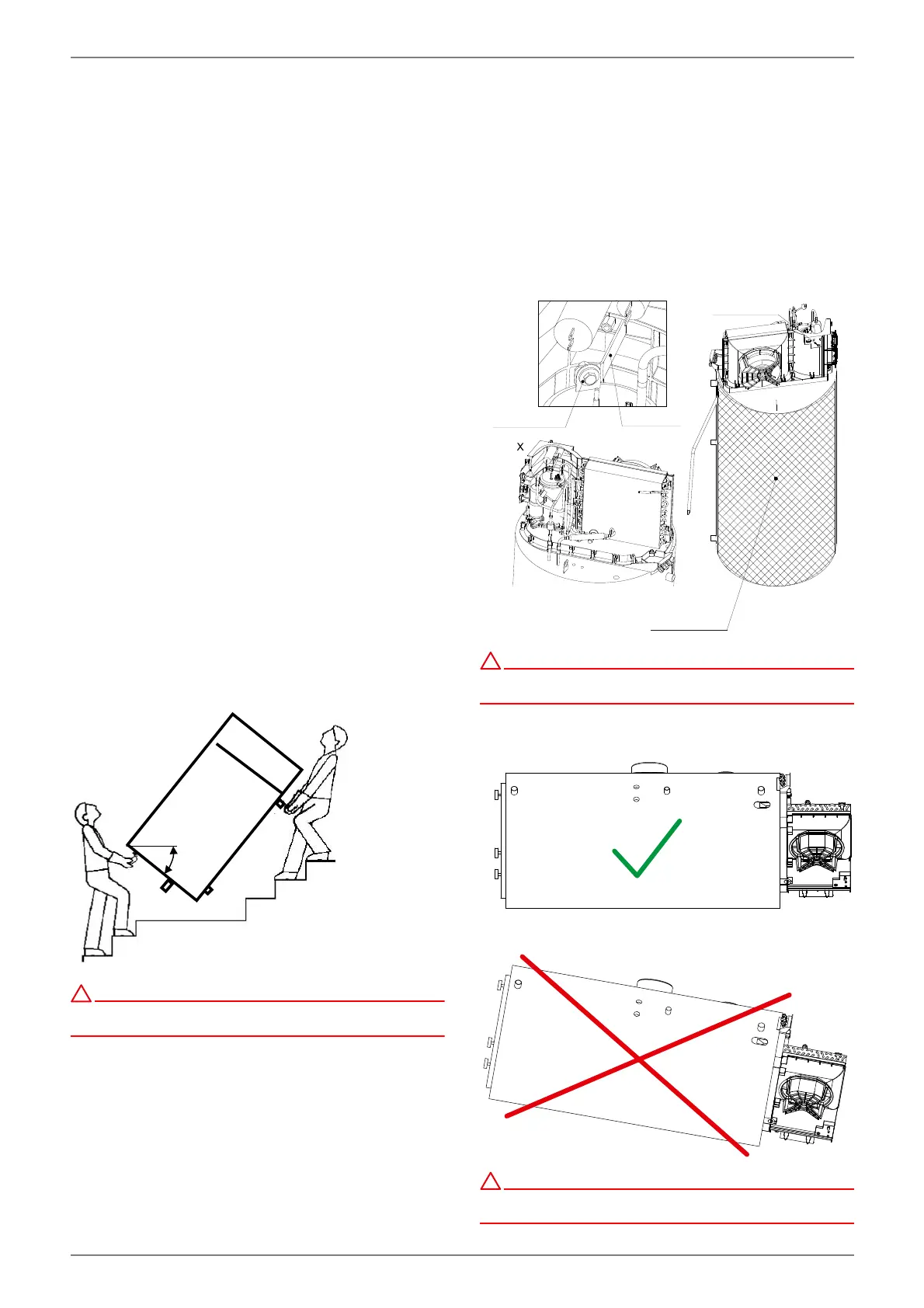 La pompe à chaleur ne doit pas être transportée tête penchée