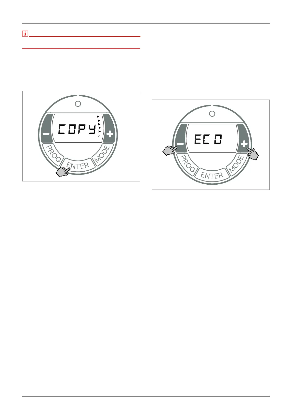 ENTER gedrückt halten, bis Anzeige COPY er-