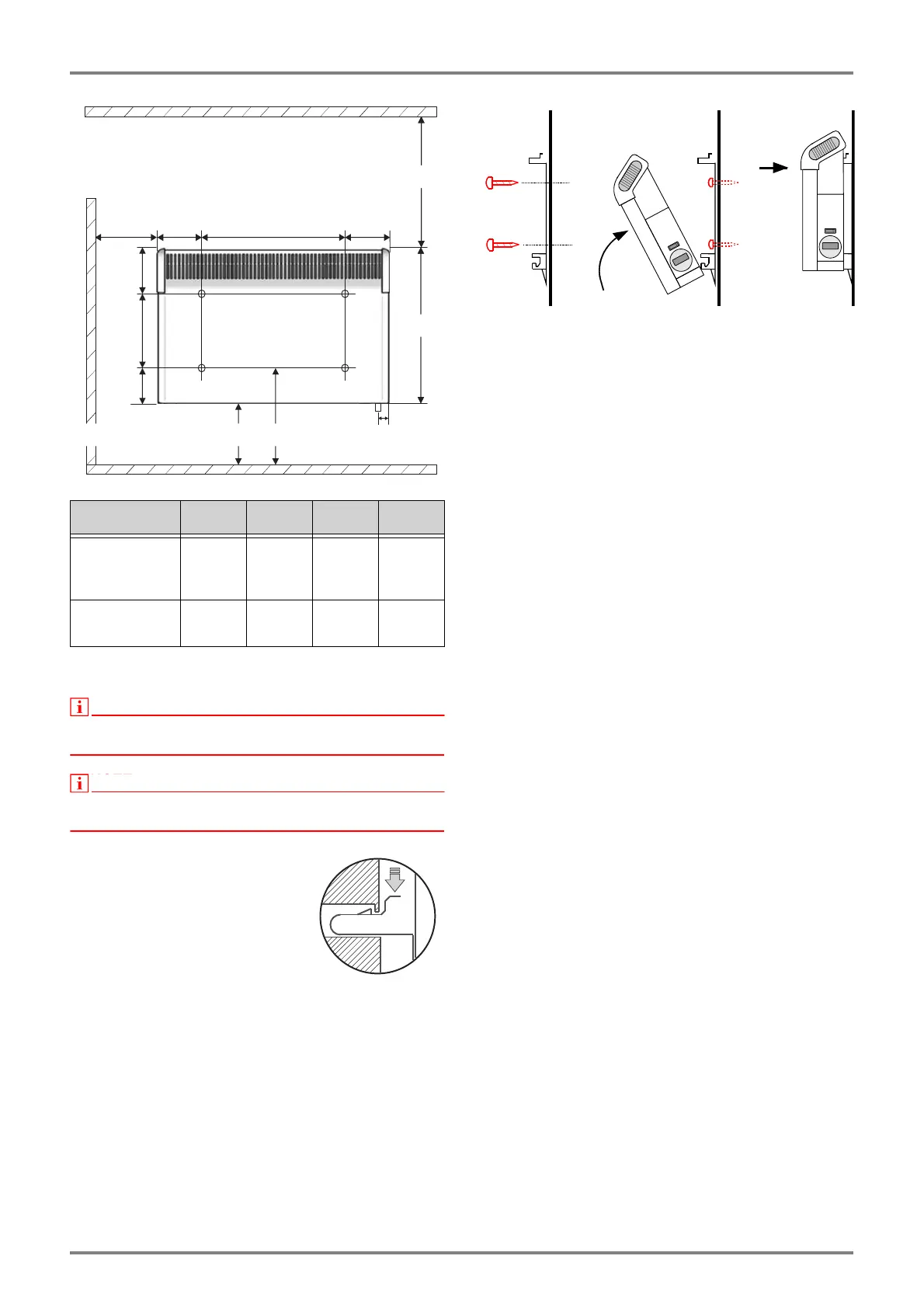 Hook the device in the bottom slots of the wall