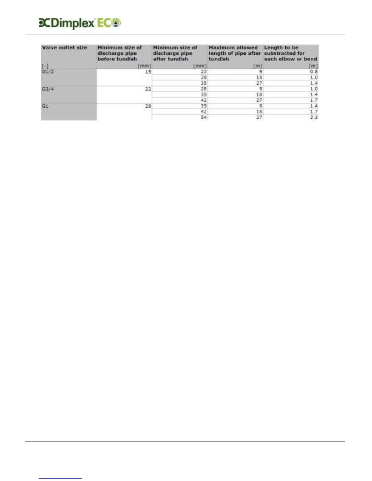 Table 4: Sizing of copper discharge pipe “D2” for common temperature relief valve outlet sizes