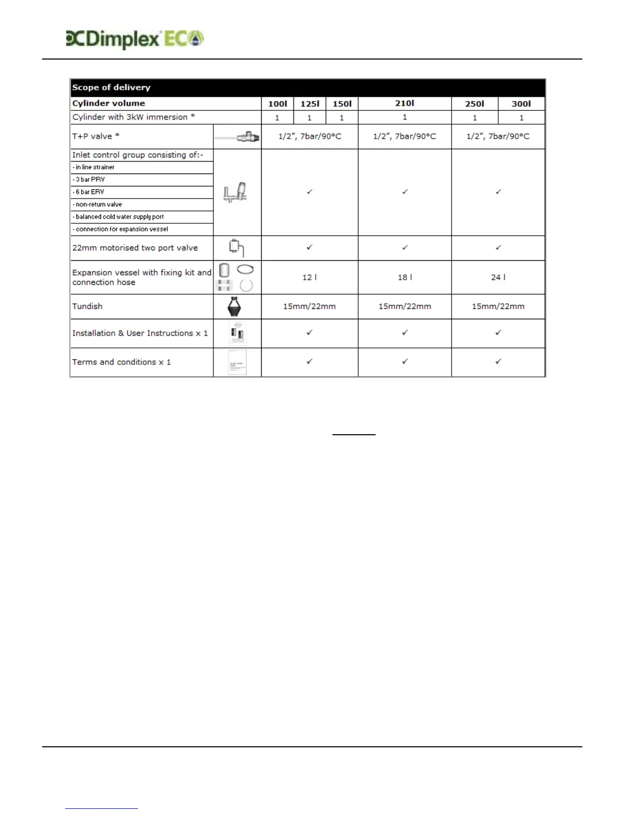 Table 3: Scope of Delivery for Indirect Cylinders