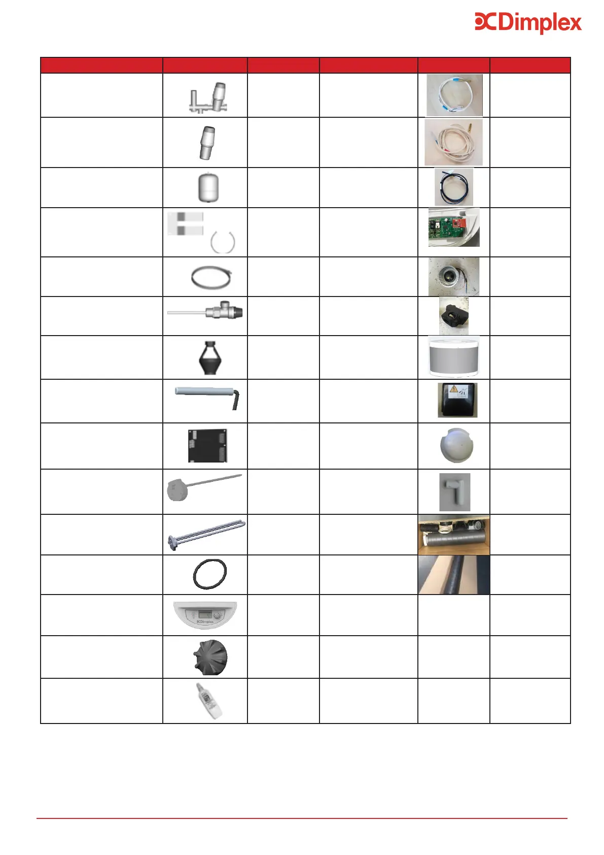 Table 6: Edel Air Source Water Heater Spare Part