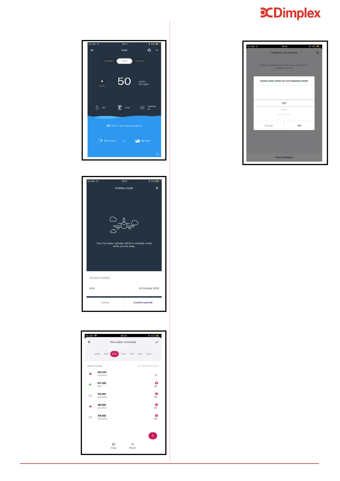 Dimplex EDL170-520RF - 9 Control App; 9.1 Home Screen Features; 9.2 Holiday Mode App; 9.3 Schedule Control App