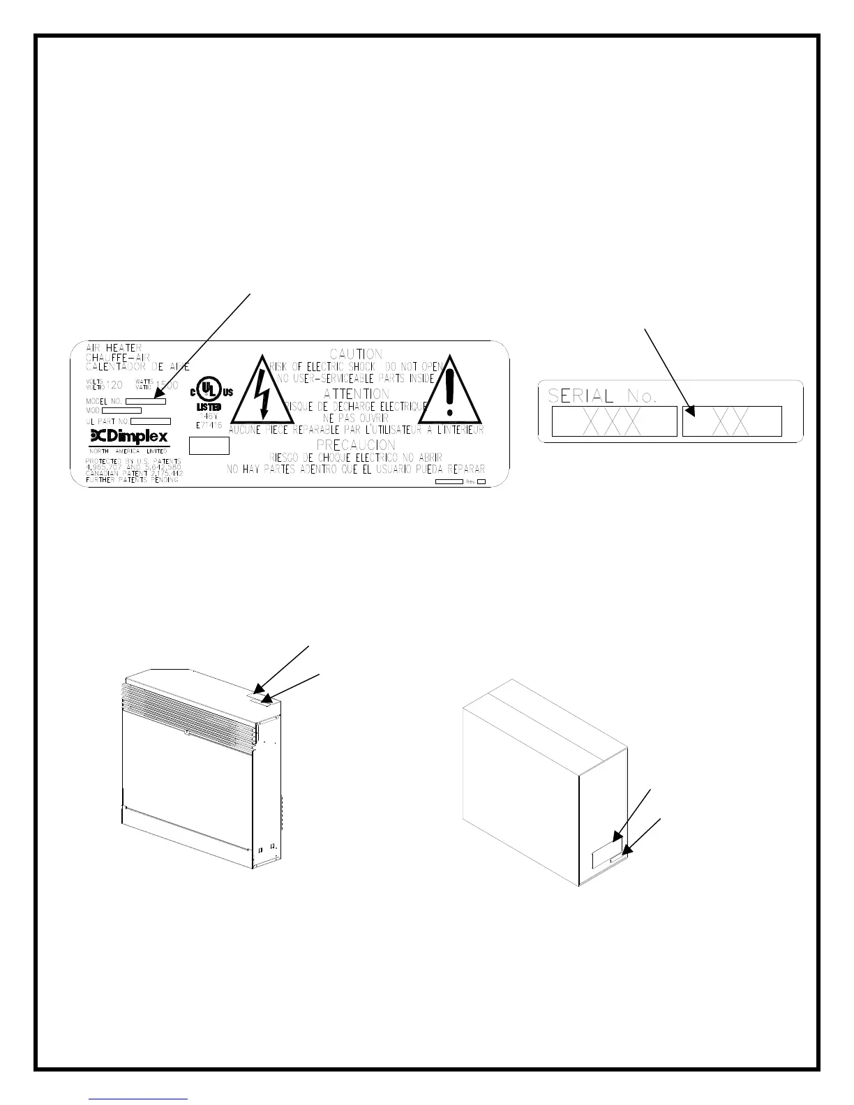 numbers available upon calling Dimplex customer service. To locate the model and serial