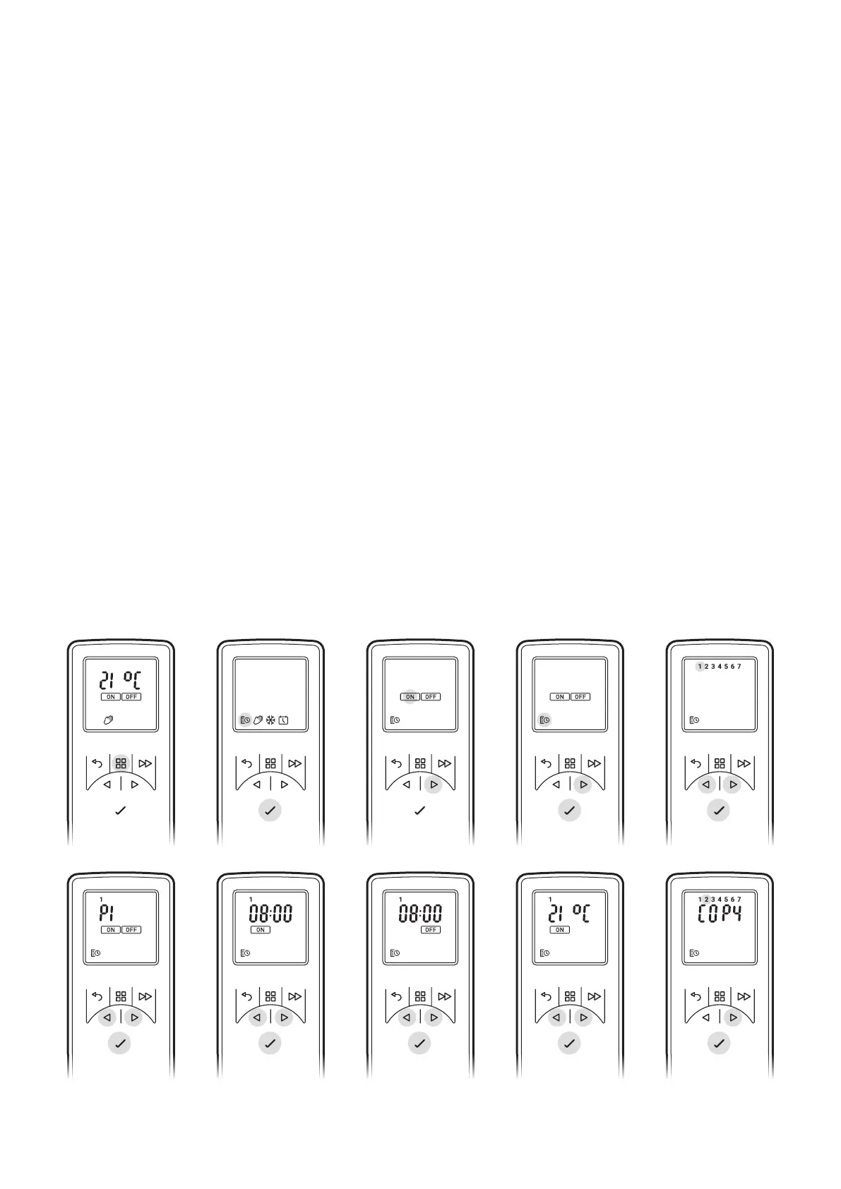 Om de nieuw geprogrammeerde instellingen van P1-P4 naar de andere dagen te kopiëren, drukt u op de Enter-knop.