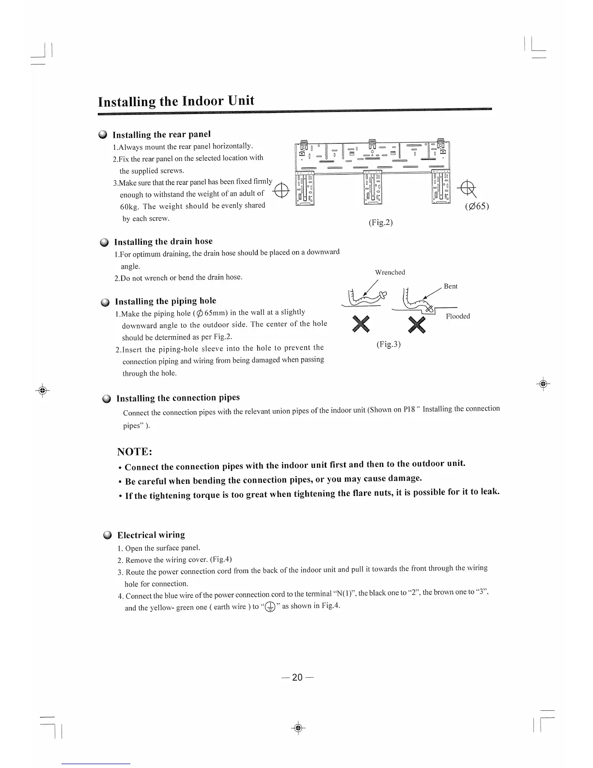 Dimplex GD24I - Installing the Indoor Unit; Installing the Rear Panel; Installing the Drain Hose; Installing the Piping Hole