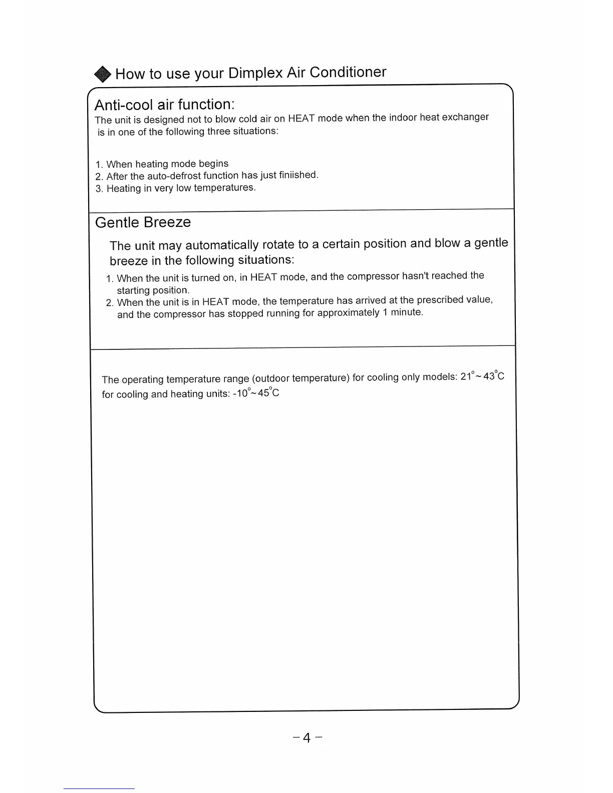 Dimplex GD24I - Anti-Cool Air Function; Gentle Breeze