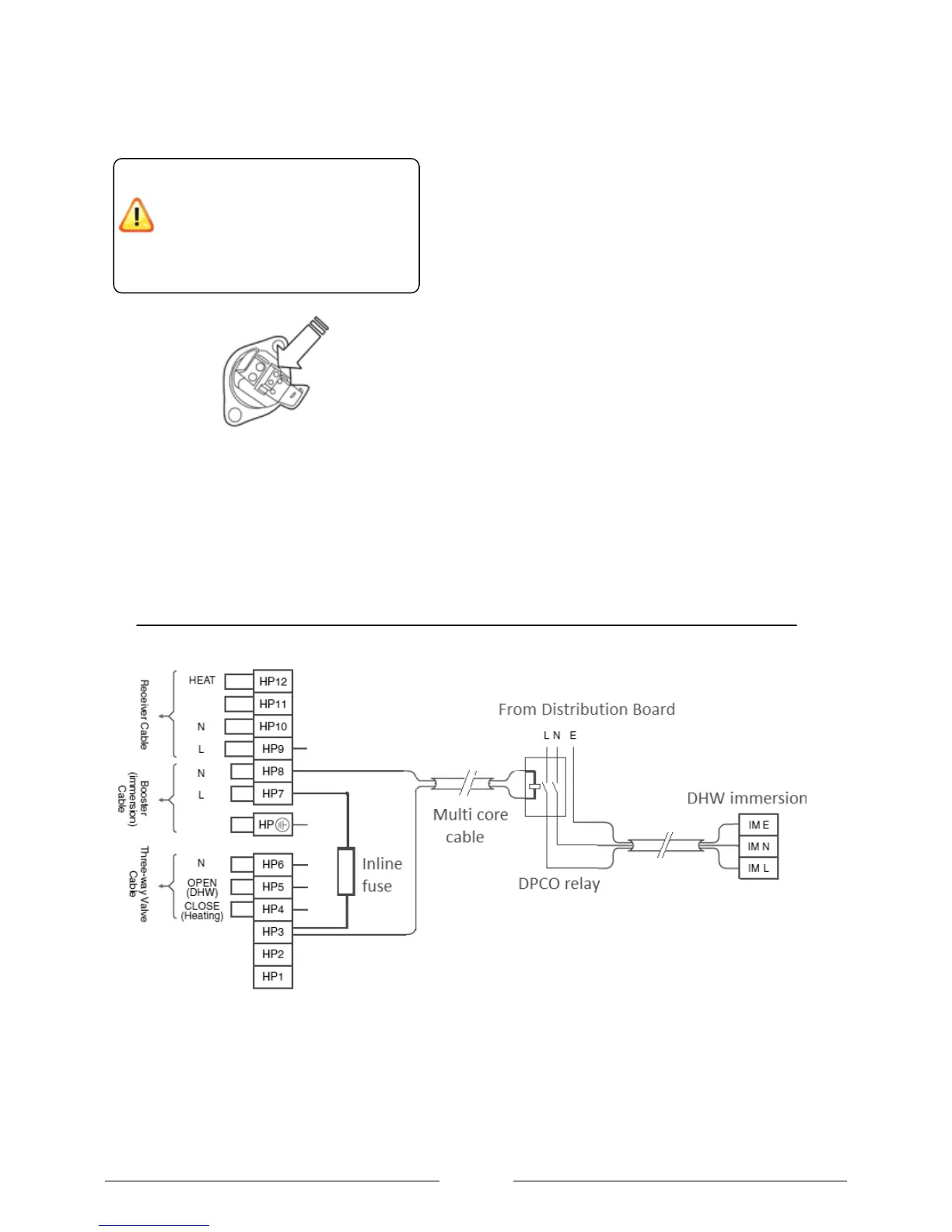 Figure 23: Wiring for Heat pump to control DPCO relay to switch supply for immersion