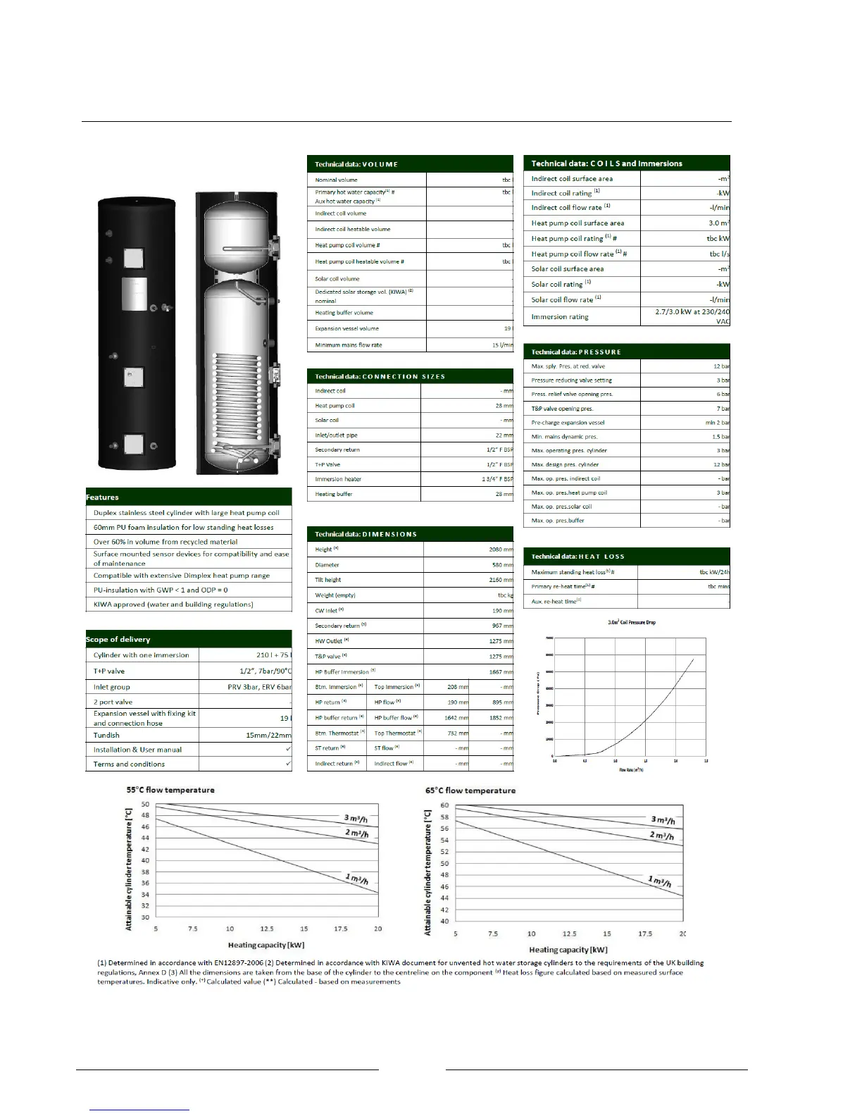 Information for DHW cylinder with buffer - ECS210HP/75-580