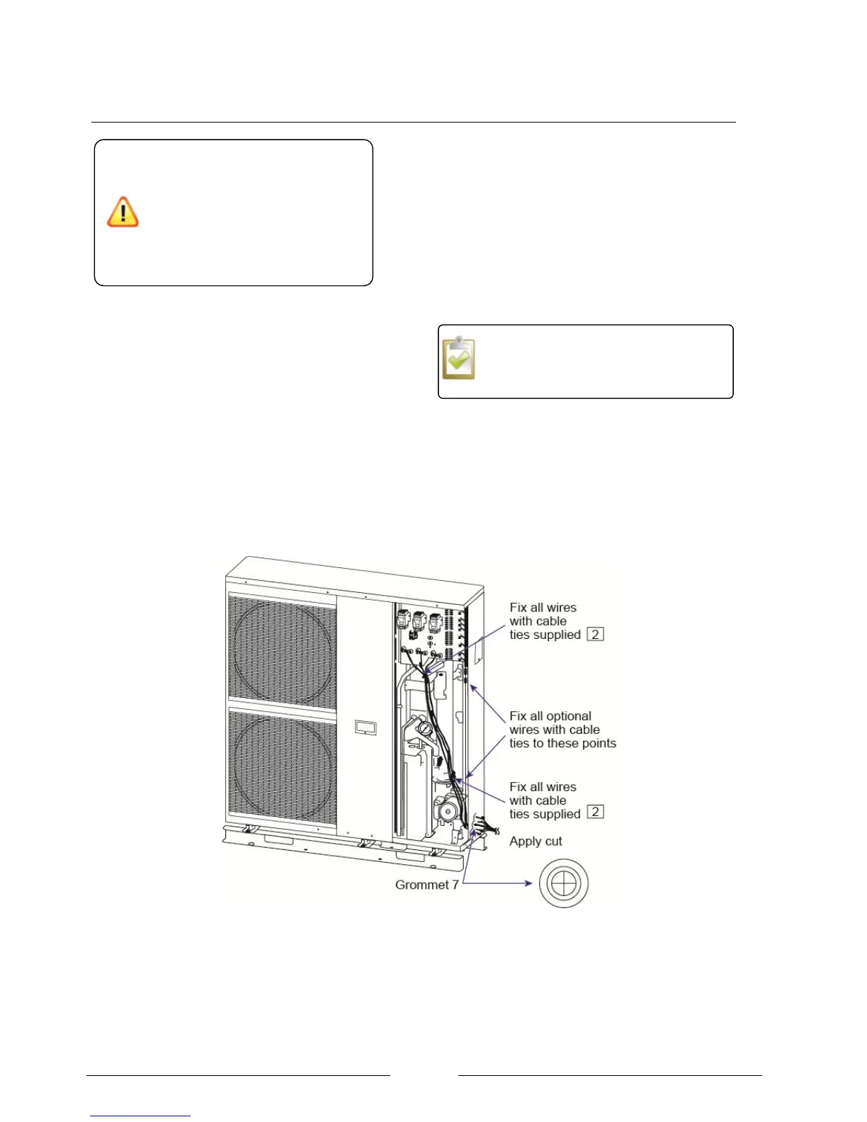 Figure 14: Correct cable routes through heat pump