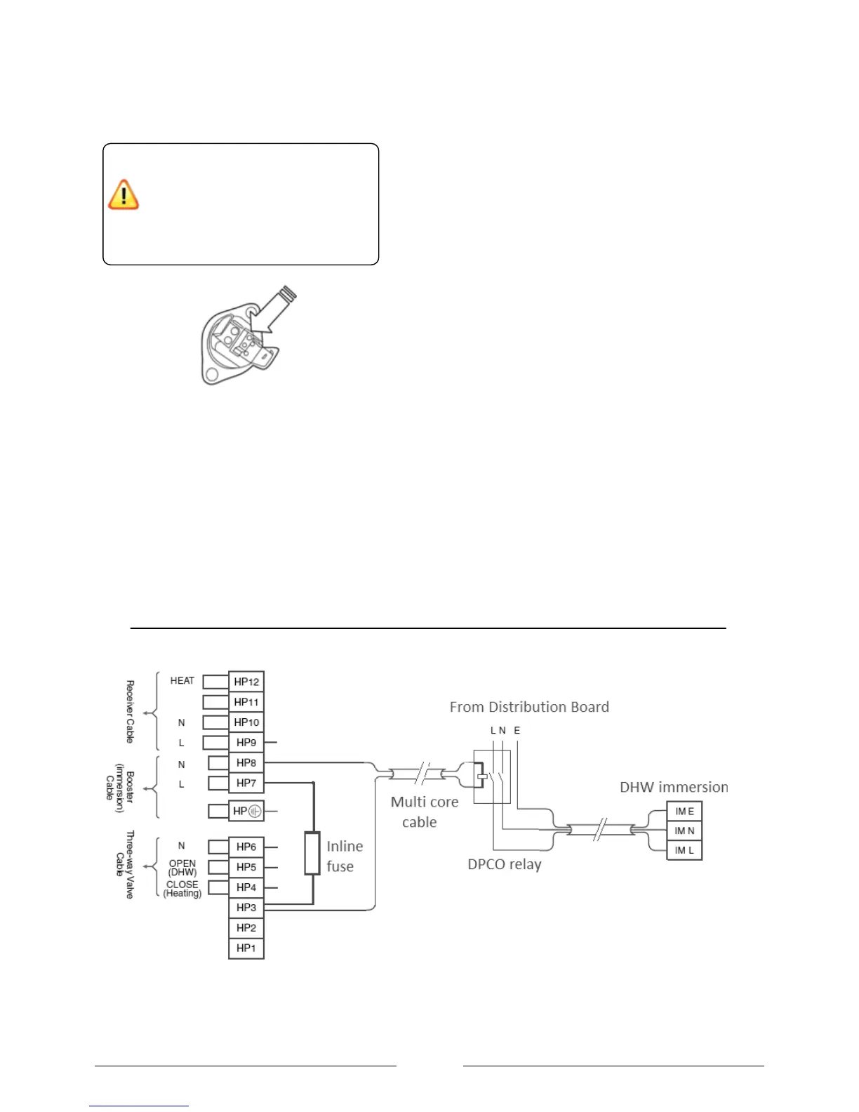 Figure 17: Wiring for Heat pump to control DPCO relay to switch supply for immersion