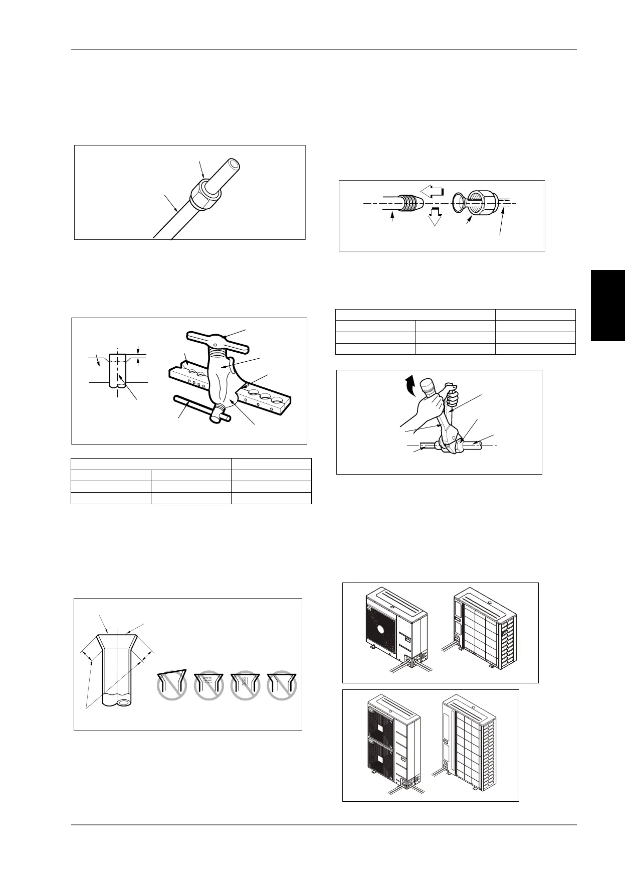 Les raccordements de tuyaux à l'unité extérieure s'effectuent en