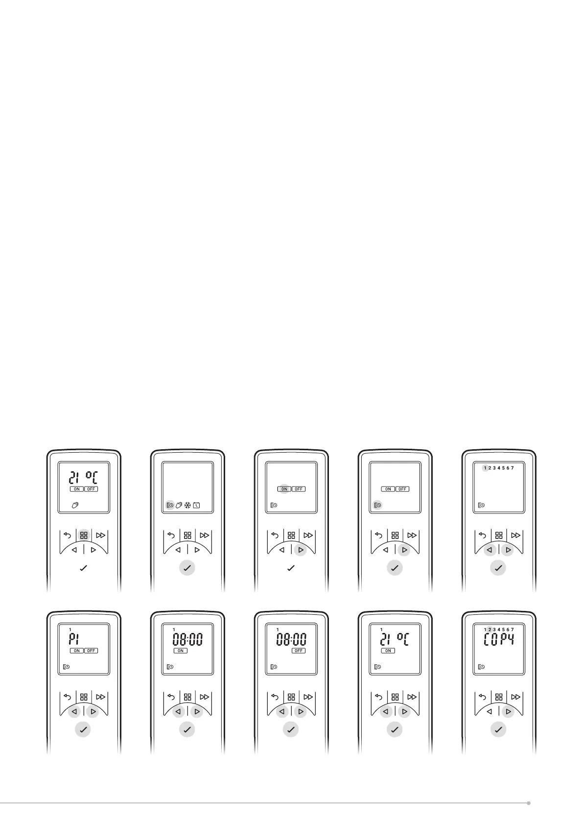 To copy to the next day in sequence, press ^ button. To deselect the next day in sequence press