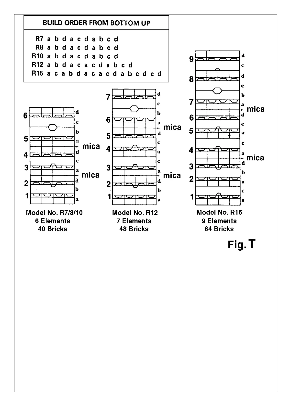 The build of the storage core for models R7, R8 and R10 is identical (see diagram Model No. R7/8/10). Elements must only be fi tted