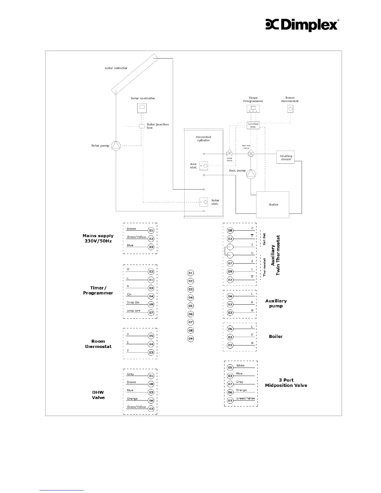 Figure 12 - Auxiliary loop integration 1x motorised two port valve and mid-position valve
