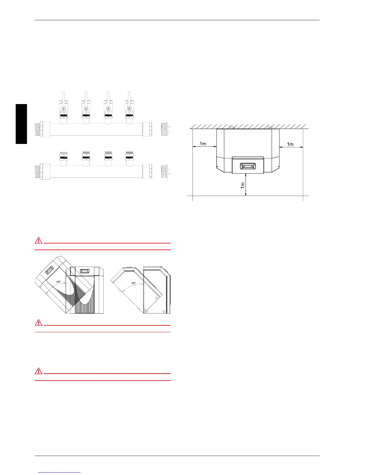 The heat pump must not be tilted more than 45° (in any direction).