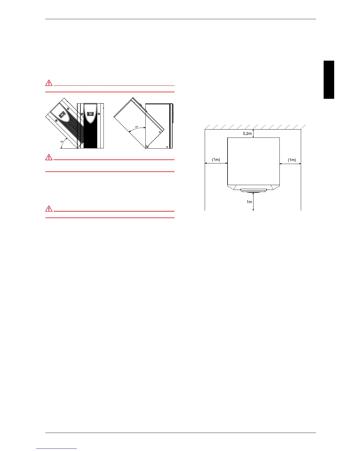 Die Wärmepumpe darf nur bis zu einer Neigung von maximal 45° (in jeder