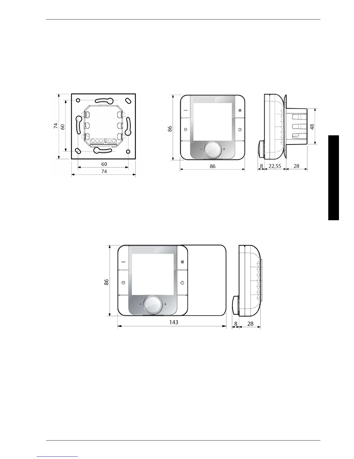 Dimplex Smart-RTC - Dimensions and Diagrams; RT Econ U; RTH Econ U Dimensions; RT Econ A; RTH Econ A Dimensions