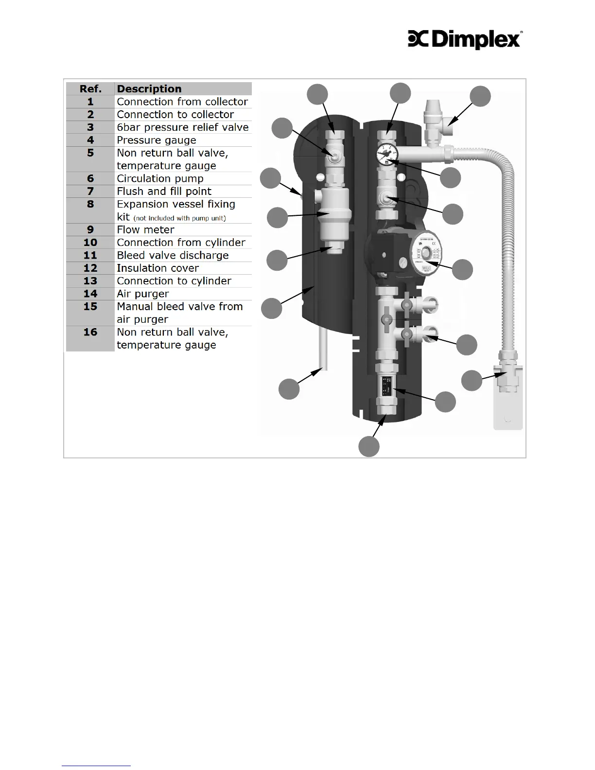 Figure 29 – Components of Dimplex solar pump unit SOLPU1 and SOLPU2