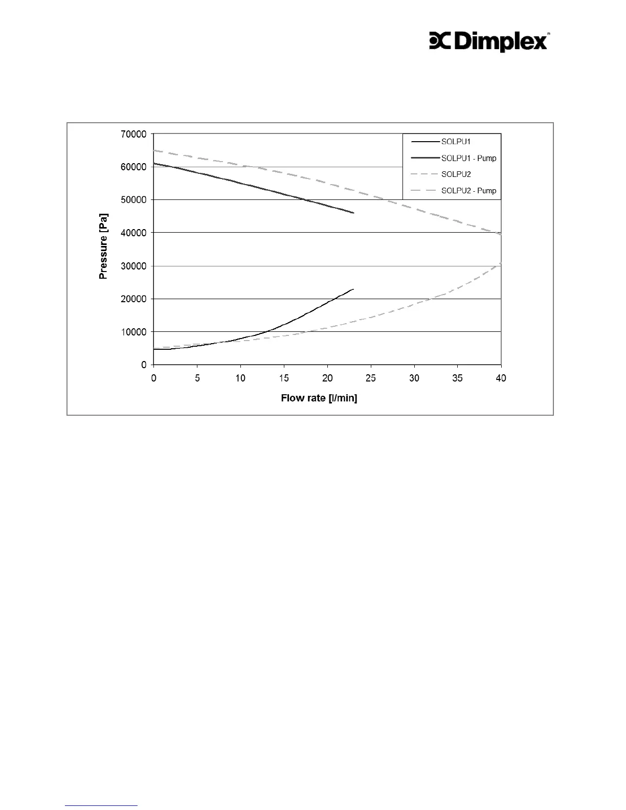 Figure 30 - Pump characteristics and pump unit pressure drop SOLPU1 and SOLPU2