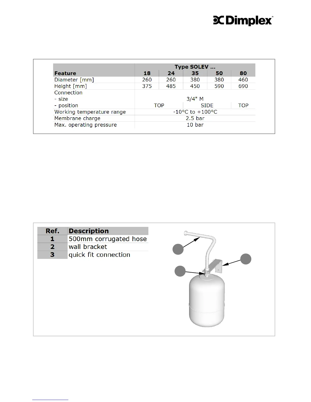 Figure 35 – Technical data Dimplex SOLEV expansion vessels