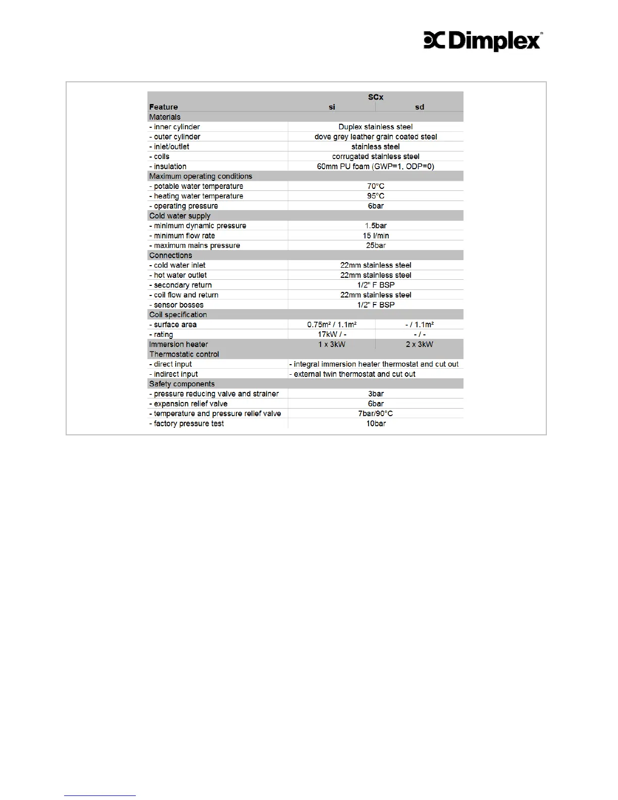 Figure 40 – Key features Dimplex solar cylinders SCx