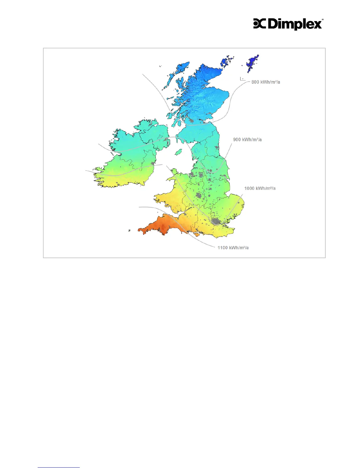 Figure 3 – UK and Ireland irradiation map (horizontal surface)