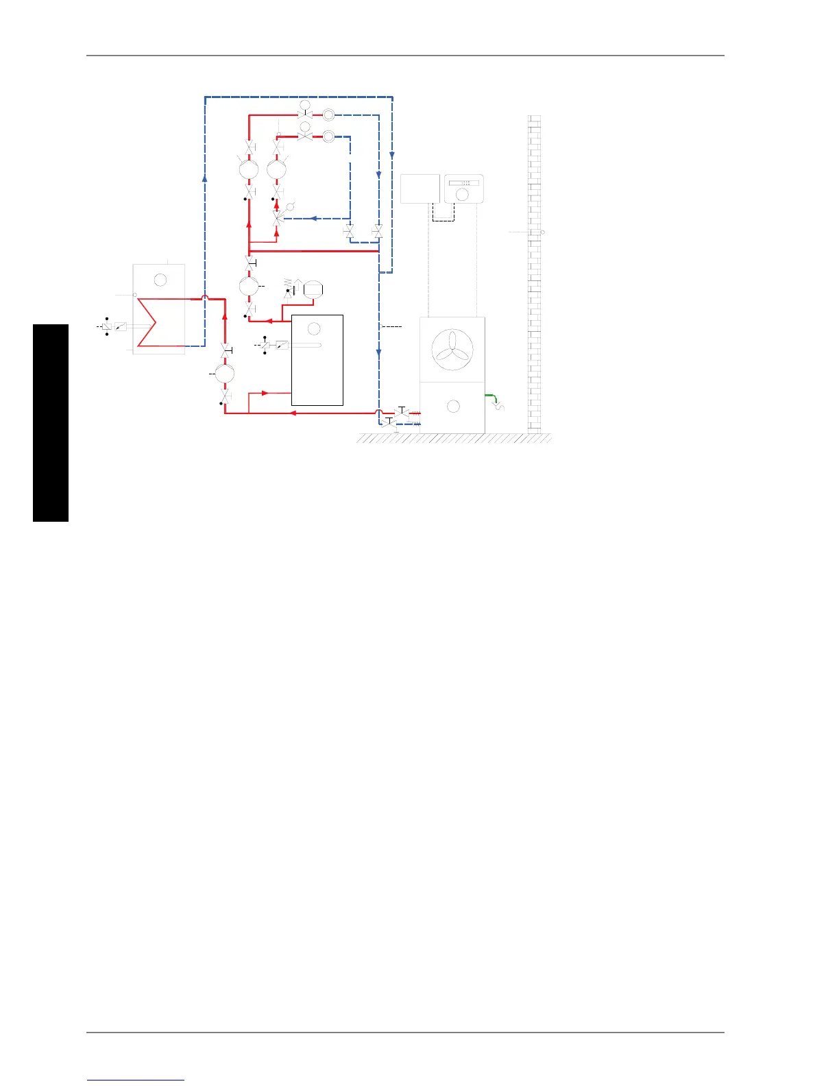 Abb. / Fig. / Fig. 2.2: Monoenergetischer Wärmepumpenbetrieb mit zwei Heizkreisen und Warmwasserbereitung /
