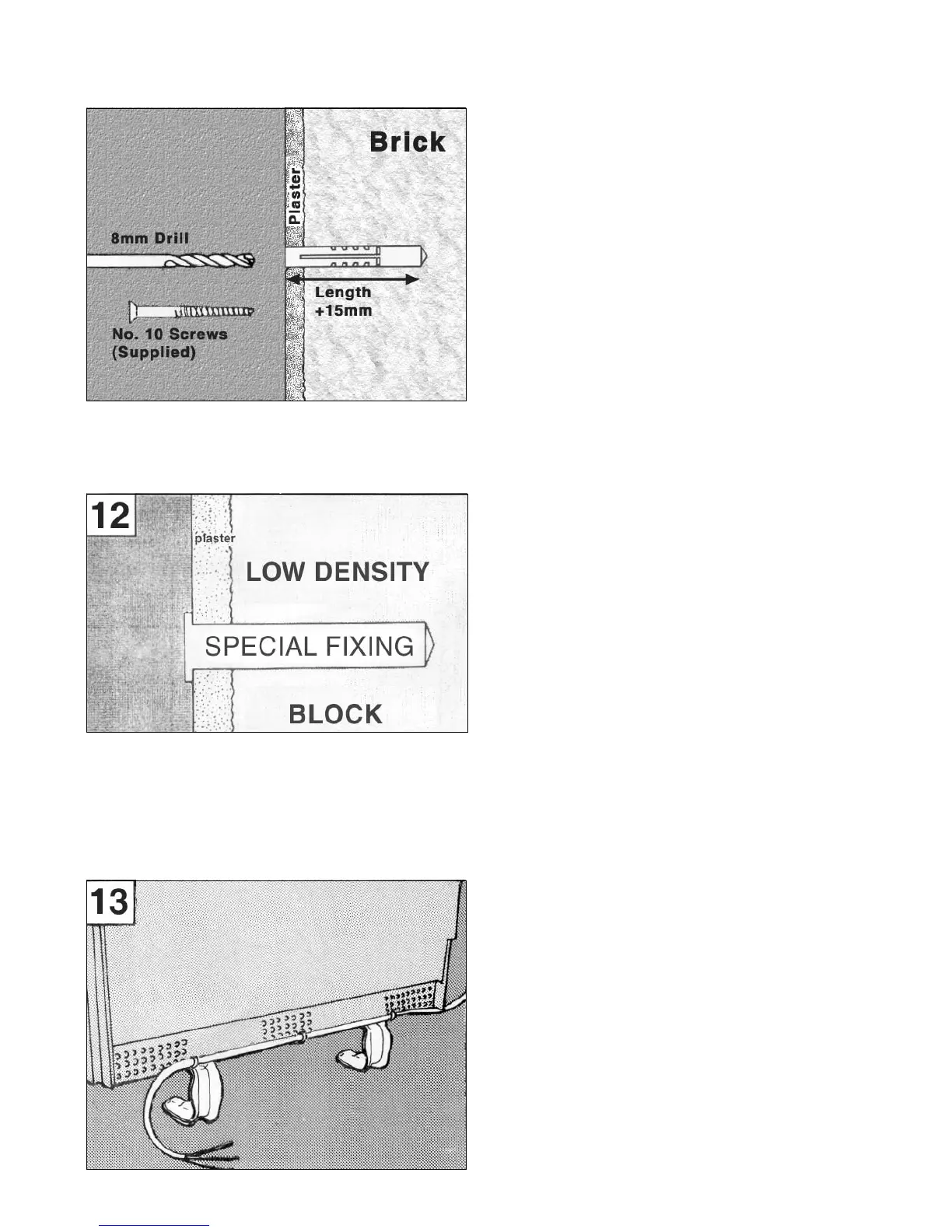 if walls are low density block.) These must be drilled